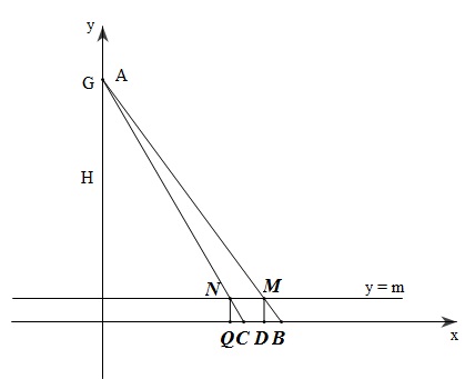 Thế $y = m$ vào phương trình $AB$ \( \Rightarrow x = 4 - \frac{{2m}}{3}\)