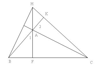 $AH = \frac{{AK}}{{c{\rm{os H}}}} = \frac{{AB\cos A}}{{\sin C}}(1)$