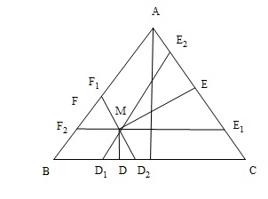 Qua $M$ kể các đường thẳng song song với các cạnh của tam giác $ABC$,