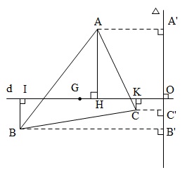 Vẽ qua trọng tâm $G$ của tam giác $\Delta ABC$đường thẳng d bất kì. Gọi $H, I, K$ lần lượt là hình chiếu của $A, B, C$ trên $d$. Chứng minh rằng trong $3$ số $AH,BI,CK$có một số bằng tổng hai số kia.