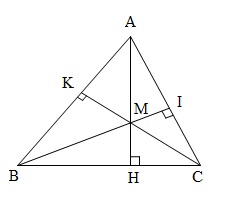 $ \Leftrightarrow$ $M$ nằm trong tam giác $ABC$ và $\frac{{MH}}{a} = \frac{{MI}}{b} = \frac{{MK}}{c}$
