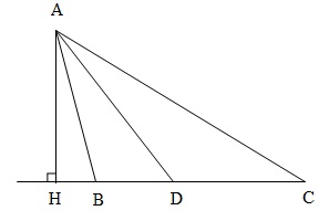 • Trường hợp $B \le {90^\circ}$ $\begin{array}{l} \widehat {HAD} = \widehat {BAD} - \widehat {BAH}\\ \,\,\,\,\,\,\,\,\,\,\,\,\, = \frac{A}{2} - \left( {{{90}^\circ} - B} \right)\\ \,\,\,\,\,\,\,\,\,\,\,\, = \frac{A}{2} - \left( {\frac{{A + B + C}}{2} - B} \right)\\ \,\,\,\,\,\,\,\,\,\,\, = \frac{{B - C}}{2} \end{array}$