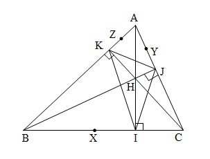 Trong hình học phẳng ta biết một kết quả là trực tâm $H$ của $\Delta ABC$ là tâm đường tròn nội tiếp $\Delta {\rm{IJ}}K$. Do đó