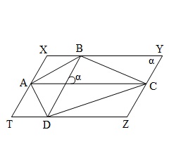 S\left( {ABCD} \right) = \frac{1}{2}S\left( {XYZT} \right) = \frac{1}{2}{\rm{YX}}.YZ.\sin \alpha