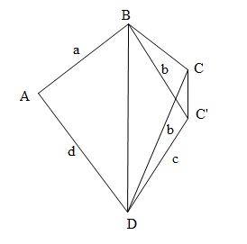 $S\left( {ABC'D} \right) \le \frac{1}{2}\left( {ab + cd} \right) (2)$