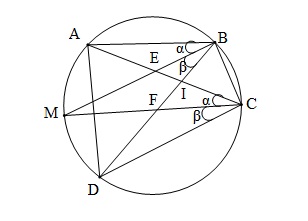 Cho tứ giác $ABCD$ nội tiếp. $AC \cap BD = I$. $M$ thay đổi trên cung $AD$ ( không chứa $B, C$). $MB, MC$ theo thứ tự cắt $IA, ID$ tại $E, F$. Chứng minh rằng $\frac{{EI.FI}}{{EA.FD}}$ không phụ thuộc vào vị trí của $M$.