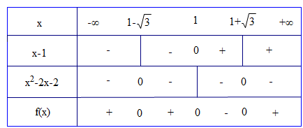 Vậy $f(x)>0$ khi $x\in (1-\sqrt{3} ;1)\cup (1+\sqrt{3};+\infty )$