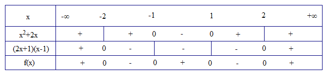 Từ bảng xét dấu ta có: $g(x)>0$ khi $x\in (-\infty ;-2)\cup (-1;1)\cup (2;+\infty )$