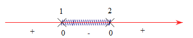 * Vế trái của $(1)$ đổi dấu khi $m$ đi qua các giá trị $m=1, m=2$