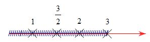 * Vế trái của $(2)$ đổi dấu khi $m$ đi qua các giá trị $m=1, m=\frac{3}{2}, m=3$