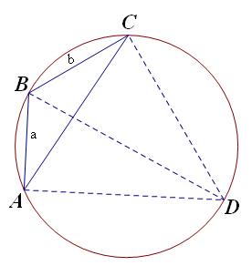 Ta thấy rằng dây AC trương cung AB và AC , tức là đoan a+b , theo định lí ptoleme ta có:
