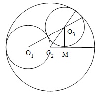 Gọi $x$ là bán kính đường tròn tâm $O_3$ và $M$ là tiếp điểm của đường tròn tâm $O_3$ với đường kính chung của $(O_1)$ và $(O_2)$