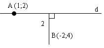 $d(B,d)=\frac{|x_B-1|}{\sqrt{1^2+0^2} } =\frac{|-3|}{1} =3$