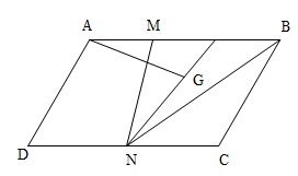 Cho hình bình hành $ABCD$, $M$ và $N$ là hai điểm lần lượt trên đoạn $AB$ và $CD$ sao cho $\frac{AM}{AB}=\frac{1}{3} $ và $\frac{CN}{CD}= \frac{1}{2}. $ a) Tính $\overrightarrow{AN} $ theo $\overrightarrow{AB}, \overrightarrow{AC}. $ b) Gọi $G$là trọng tâm của tam giác $MNB$, tính $\overrightarrow{AG} $ theo $\overrightarrow{AB}, \overrightarrow{AC}. $ c) Gọi $I$ là điểm định bởi $\overrightarrow{BI}=k \overrightarrow{BC} $. Tính $\overrightarrow{AI} $ theo $\overrightarrow{AB}, \overrightarrow{AC} $ và $k$. Tìm $k$ để $AI$ đi qua $G$.
