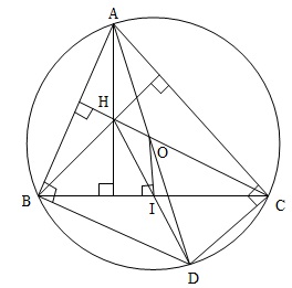 Cho $\Delta ABC$. Gọi $K$ là điểm sao cho $\overrightarrow{KA}+\overrightarrow{KB}+\overrightarrow{KC}=\overrightarrow{0} $ $1$. Chứng minh $K$ là trọng tâm của tam giác $ABC$; $2$. Gọi $H$ là trực tâm và $O$ là tâm đường tròn ngoại tiếp tam giác $ABC$, $AO$ cắt đường tròn tại $D$. Chứng minh $BHCD$ là hình bình hành. $3$. Gọi $I$ là trung điểm của $BC$. Chứng minh $\overrightarrow{AH}=2 \overrightarrow{OI}. $ $4$. Chứng minh: $\overrightarrow{HA}+\overrightarrow{HB}+\overrightarrow{HC}=2 \overrightarrow{HO}; \overrightarrow{OA}+\overrightarrow{OB}+\overrightarrow{OC}=\overrightarrow{OH}; O, K, H$ thẳng hàng.