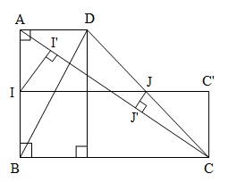 Cho hình thang vuông $ABCD$. Đường cao $AB=2a$. Cạnh đáy $AD=a, BC=3a.$ a) Tính $\overrightarrow{AB}.\overrightarrow{BD}$ và $\overrightarrow{BC}.\overrightarrow{BD} $. Suy ra $\overrightarrow{AC}.\overrightarrow{BD} $ b) Gọi $I,J$ lần lượt là trung điểm của $AB,CD$ có hình chiếu là $I', J'$ lên $AC$. Tính $I'J'$