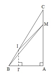 Cho $\Delta ABC$ vuông góc tại $A, AB=3$ và $M$ là một điểm trên cạnh $AC$. a) Tính $\overrightarrow{MB}.\overrightarrow{BA}. $ b) Gọi $I$ là một điểm trên cạnh $BC$ sao cho $\frac{IB}{IC}=\frac{1}{3} $. Tính $\overrightarrow{MI}.\overrightarrow{AB}. $
