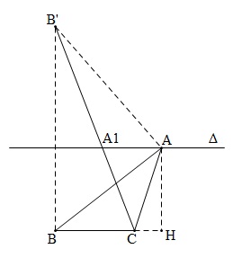 Xét $\Delta ABC$ có diện tích $S$ và cạnh đáy $BC=a\rightarrow AH=\frac{2S}{a}=h$(chiều cao). Vì $AH$ không đổi suy ra $A$ chạy trên đường $\Delta//BC$ . Xét phép đối xứng qua $\Delta$: $D(\Delta)(B)=B'. D(\Delta)(A)=A'.$ Do đó, $BA\rightarrow B'A$ nên $BA+AC=B'A+AC>B'C$. Vậy $BA+AC$ nhỏ nhất khi và chỉ khi $BA+AC=B'C$. Khi đó $A\equiv A1$ là trung điểm của $B'C$ suy ra $A1B=A1C$. Vậy chu vi $\Delta ABC$ có $BC$ không đổi, diện tích $S$ không đổi, đạt giá trị nhỏ nhất khi $\Delta ABC$ là tam giác cân đáy $BC$.