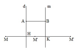 Cho $d//m$. Lấy $A\in d, B\in m$. Sao cho $AB$ vuông góc $d$ và $m$, $AB$ cố định.