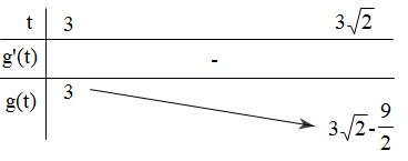 $g(t)= t- \frac{t^2-9}{2} = -\frac{1}{2}t^2+t+ \frac{9}{2} $ trên $ [3; 3 \sqrt{2} ]$